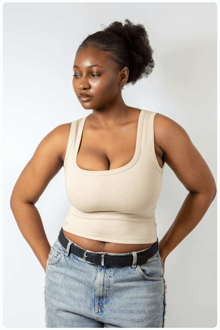 Versatile and chic, this Warm Sand tank transitions effortlessly from day to night. Pair it with tailored trousers and our Ultimate Tailored Blazer for a polished office look, or switch to a leather jacket and statement earrings for a stylish evening ensemble. Whether you’re heading to brunch or enjoying rooftop cocktails, this tank in Warm Sand is your ultimate go-to for effortless elegance.