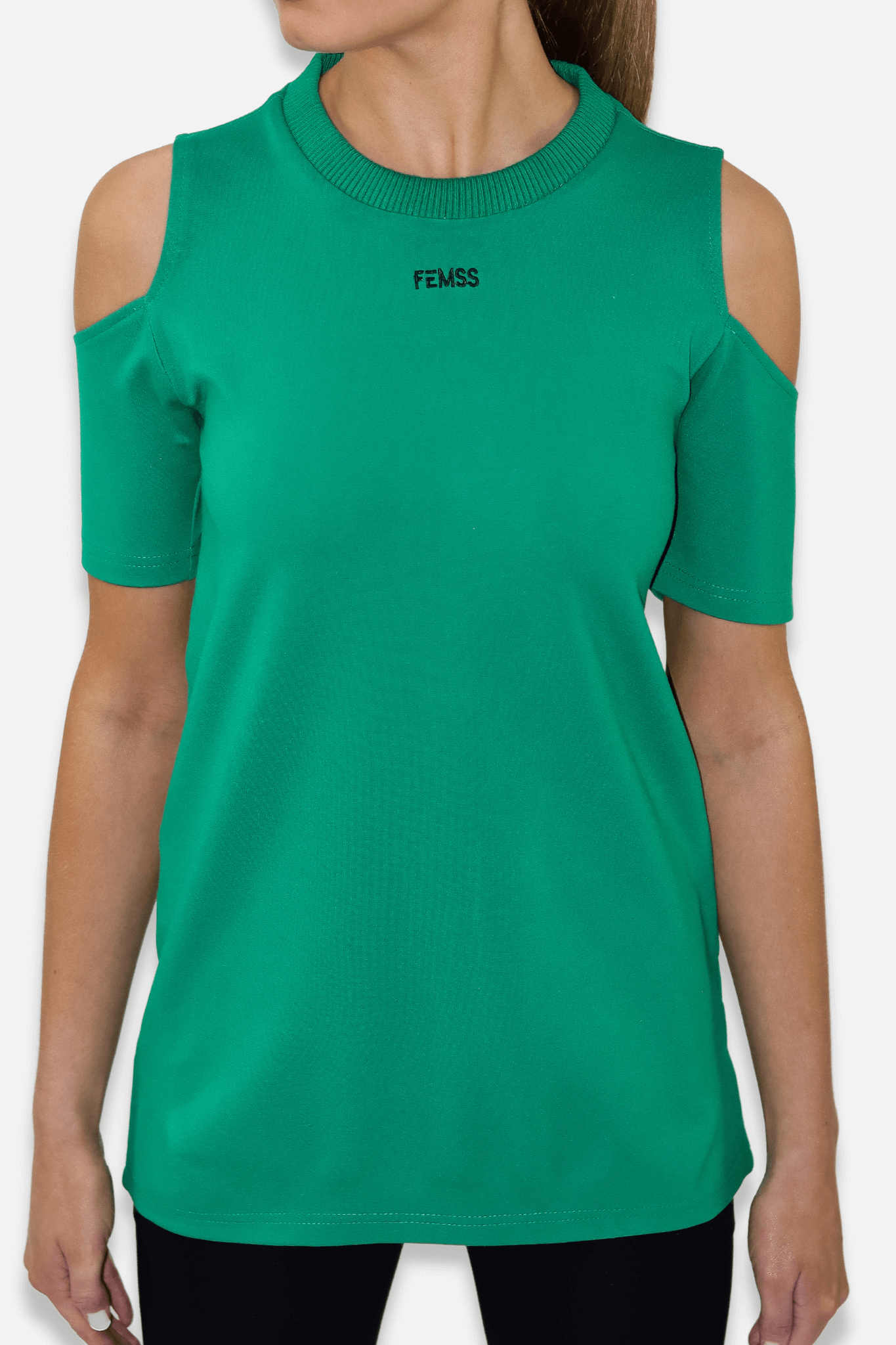 Elevated Lounge T-Shirt with Cold Shoulder Sample Sale- Racer Green