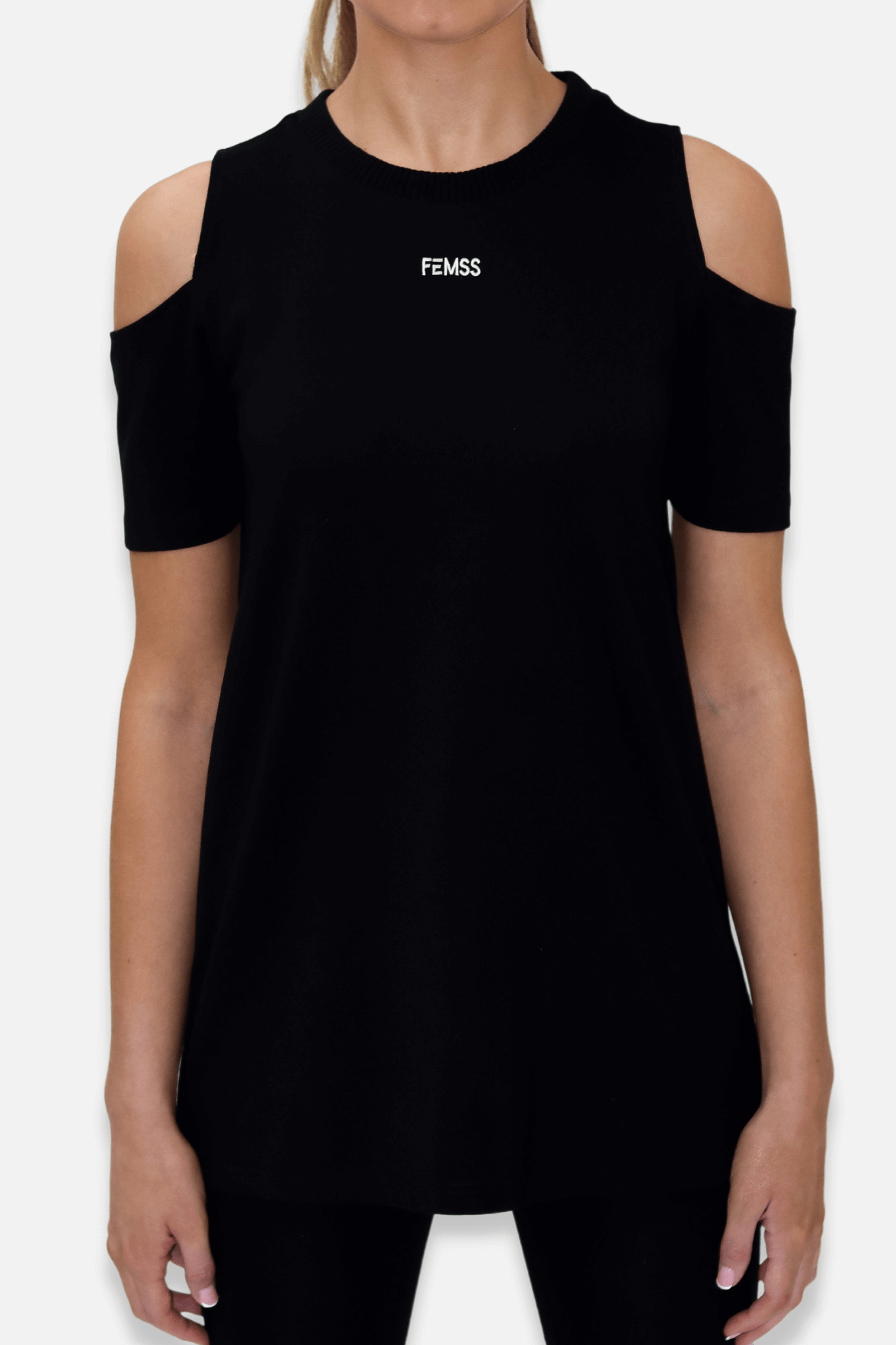 Elevated Lounge T-Shirt with Cold Shoulder Sample Sale- Black