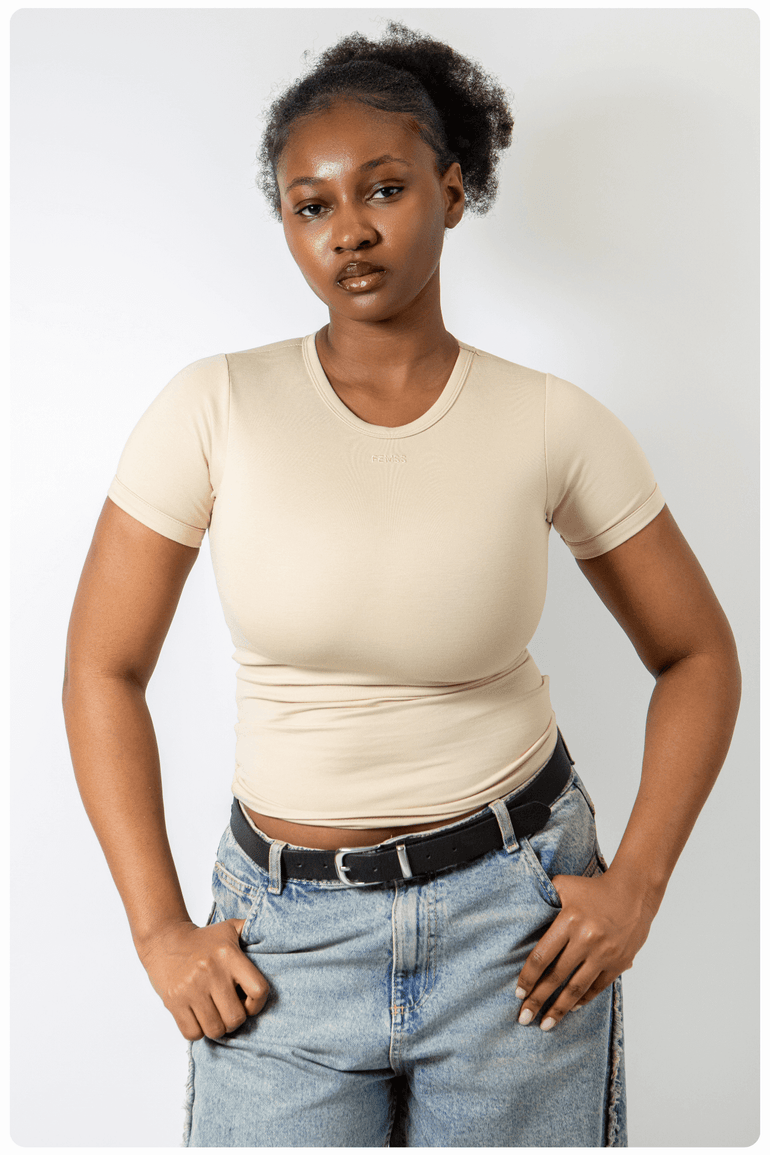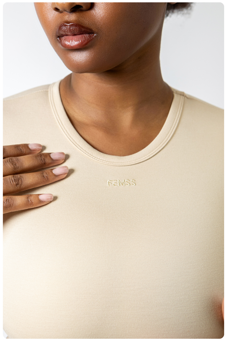 Elevate your wardrobe with the ultimate luxury of FEMSS' Luxury Fitted T-Shirt. Made from our Signature Luxe fabric, this design effortlessly combines beauty and function, resulting in a piece that's both stunning and incredibly supportive.