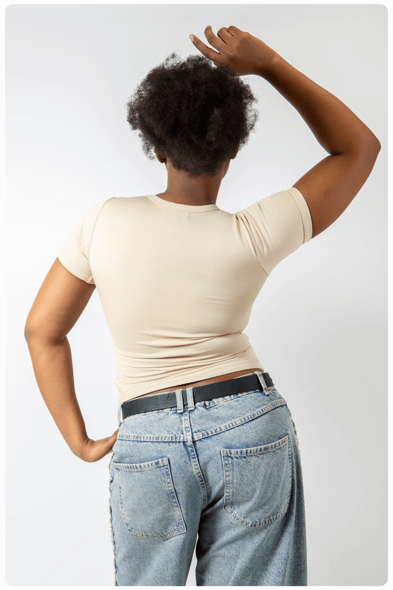 Whether you're dressing up for a night out or enhancing your everyday style, our Luxury Fitted T-Shirt in Warm Sand will be your go-to choice. Its timeless design and unmatched quality ensure it's a piece you'll treasure for years.