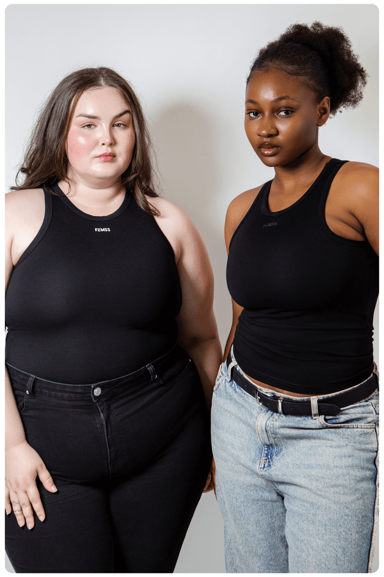 This isn't your basic racerback tank top - it's your new wardrobe staple and part of our Luxury Tops Collection. Meet the Luxury Racer Back Tank Top by Femss, where luxurious comfort meets timeless style. Designed to make you feel unstoppable, this tank is made from an ultra-soft premium fabric that moulds to your body like a second skin, offering medium compression for a flawless, sculpted fit. The high neckline and racerback design provide a sleek silhouette that flatters every angle, while the thick, supportive fabric lifts and shapes. The embroidered FEMSS logo detail adds a touch of interest. But if you prefer a more sleek look, go for our Luxury Racer Back Tank Top in Black on Black.