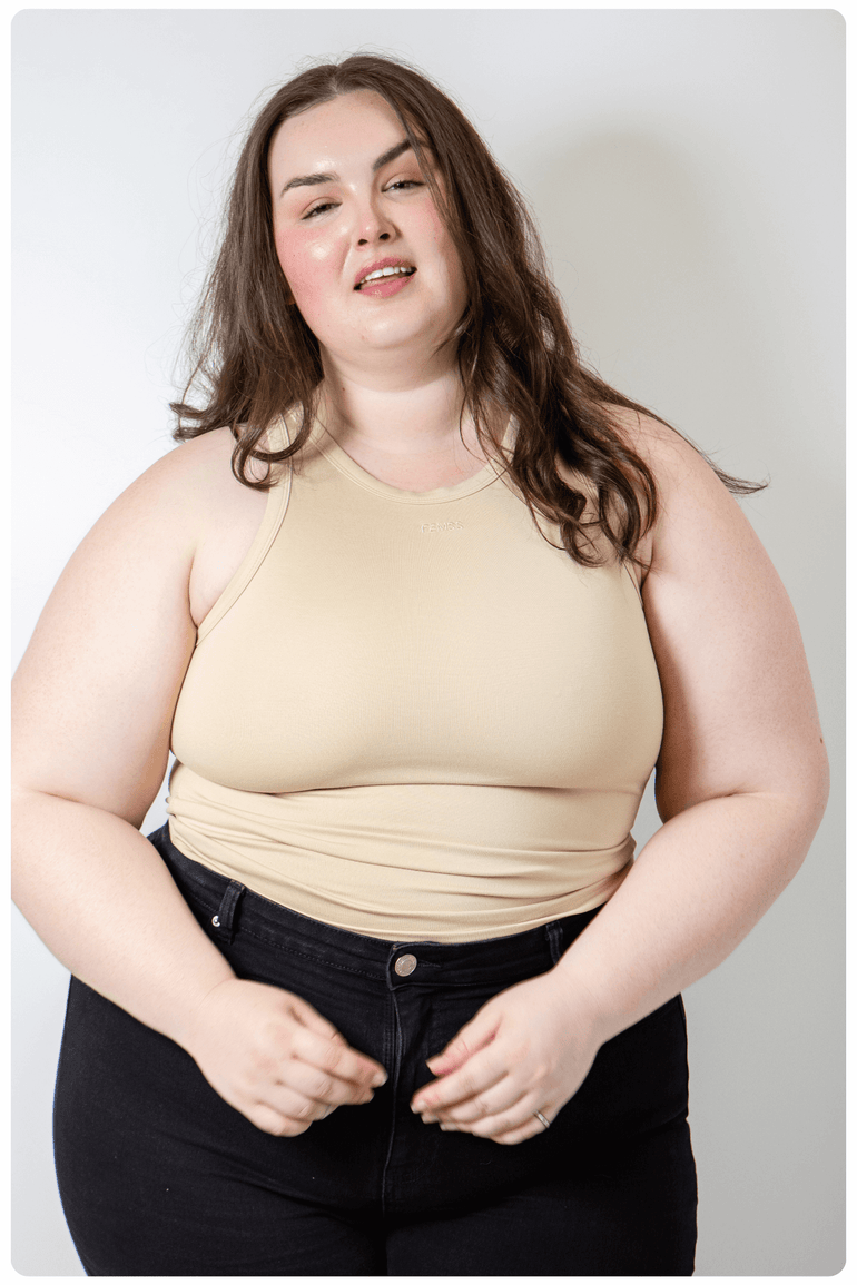 The Luxury Racer Back Tank Top in Warm Sand—where luxurious comfort meets exceptional style. More than a basic racerback tank top; your new wardrobe essential from our Luxury Tops Collection. Made from ultra-soft, premium fabric, this tank moulds to your body, offering a flawless, sculpted fit with medium compression for superb support. The high neckline and racerback design provide phenomenal support, making you feel as confident as if you were wearing a bra.