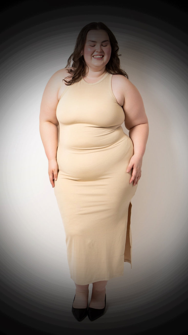 Introducing our sell out Luxury Racer Midi Dress, now in the perfect Warm Sand neutral shade. Inspired by our viral Racer Back Tank Top, our collaborative dress with the stunning Saterra, also known as FullerBustBestie, took us over a year to perfect. Bringing you the ultimate piece that you can wear all year round.