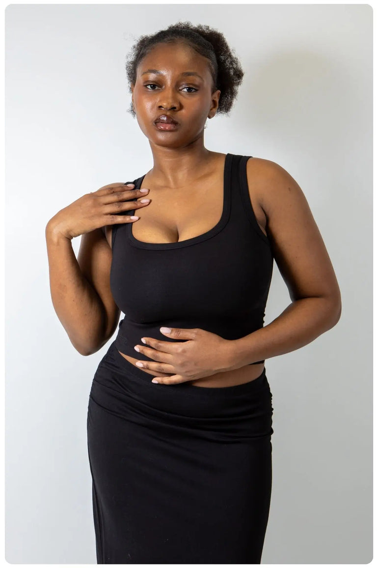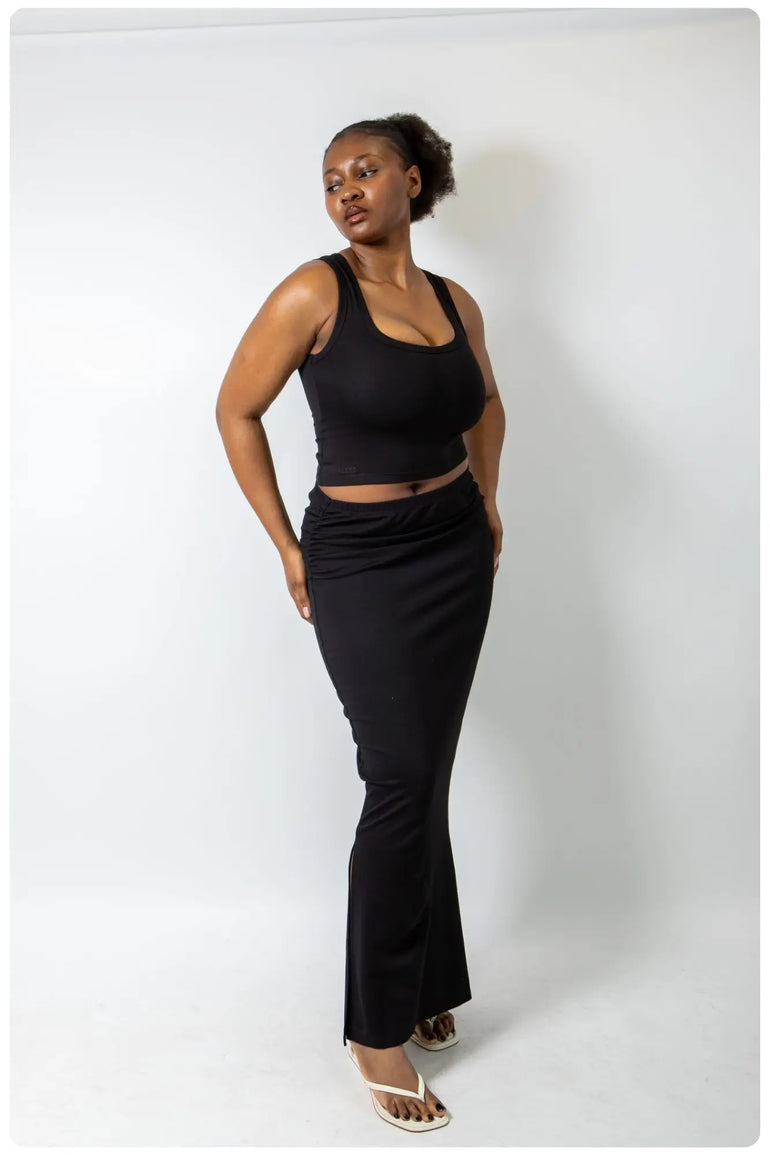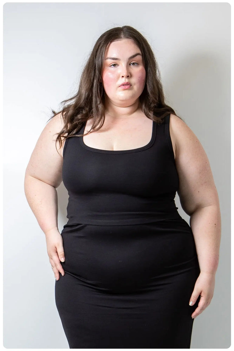 Meet your new favourite curve-friendly co-ord. This sculpting set features our best-selling Square Neck Tank, designed to support and flatter fuller busts, paired with the figure-enhancing Ruched Maxi Skirt that smooths and defines. Made from our signature high-stretch, high-recovery fabric, it’s the ultimate in elevated comfort—effortlessly chic, endlessly wearable, and fit-tested on real women.
